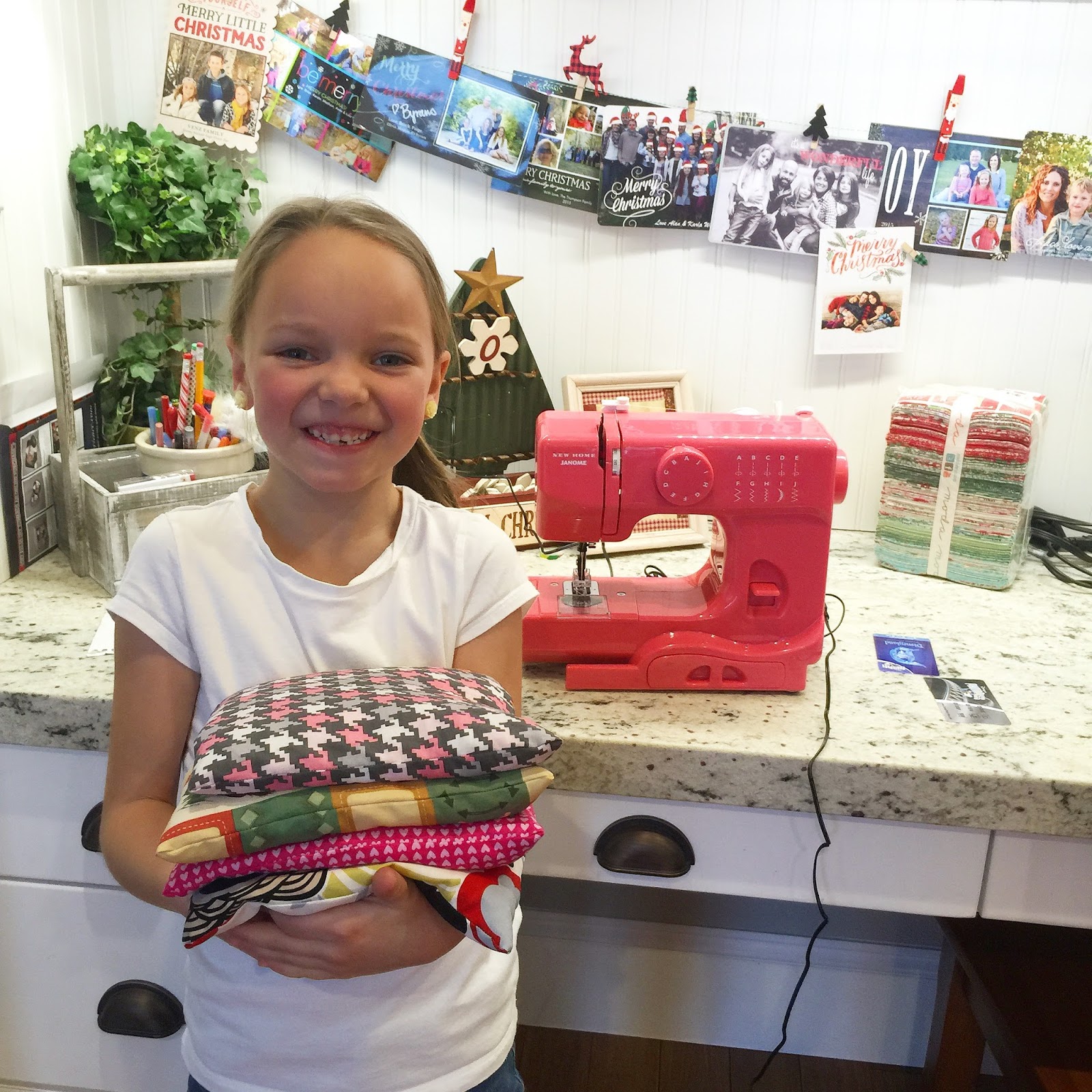 Brooke was soo excited about her new sewing machine and made rice bags for all!